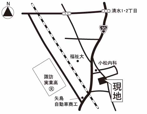 交通 | 電車:中央本線上諏訪駅 距離1500m 徒歩15分 自動車10分 高速道路:中央道 諏訪I.C. |