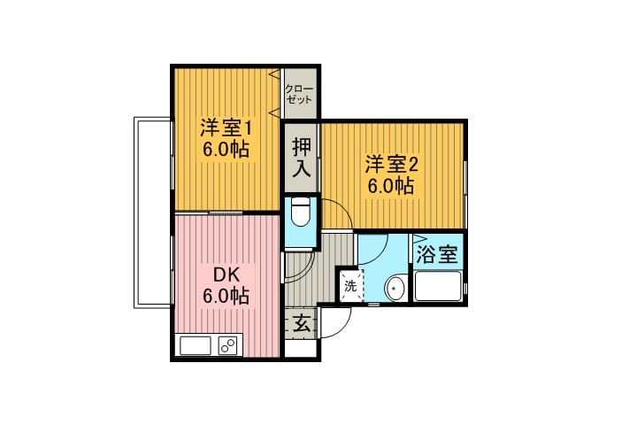 | 間取 | 2K(和6帖・6帖・キッチン・浴室・トイレ) |