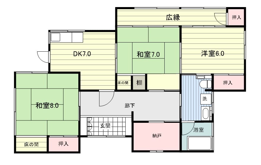 | 間取 | 5SLDK(和室4.5・6・6・6・6帖、LDK10帖、納戸2帖) |