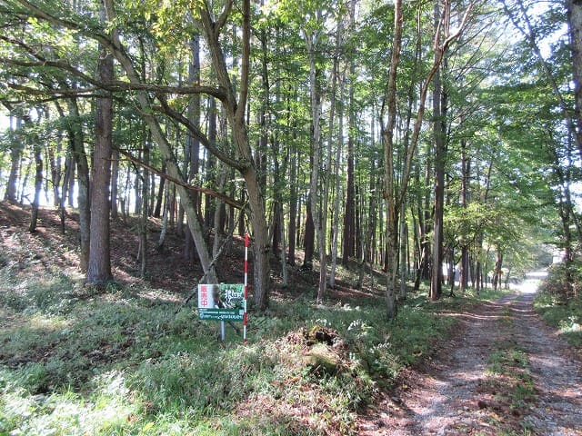 南側前面舗装道路からは東に八ヶ岳が望めます。北のカラマツ林は南傾斜の林です。