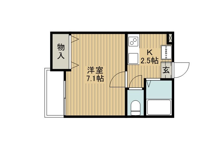 - 間取1K(洋7.1/K2.5)