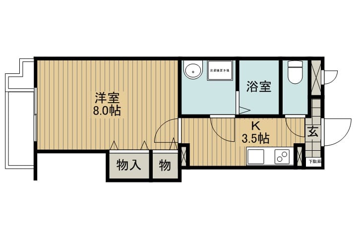 | 間取 | 1K(洋8.5・K3・トイレ・洗面台・バルコニー) |