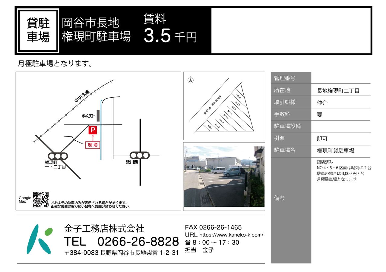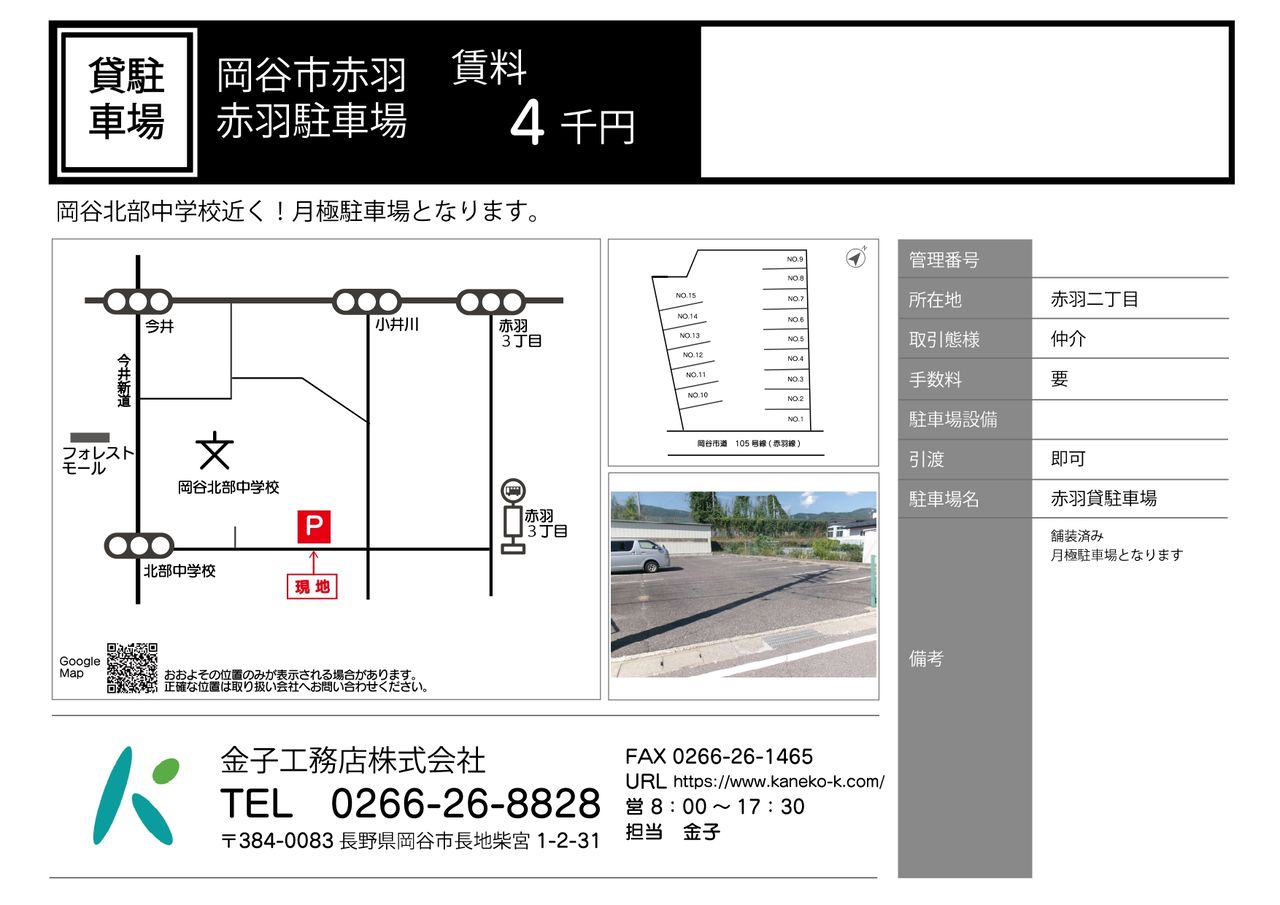 | 交通 | 電車:中央本線下諏訪駅 距離2600m 自動車9分 高速道路:長野道 岡谷I.C. |