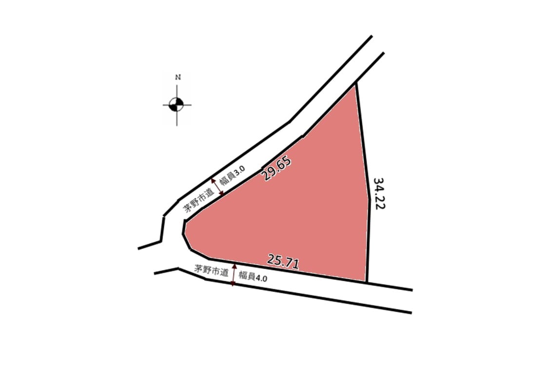 | 接道状況 | 方角:北西 道路幅員:3m 公私区分:公道 方角:南西 道路幅員:4m 公私区分:公道 |