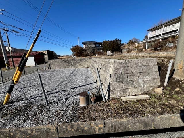 三方向石積完了の整形地、南は道路高低差がありプライバシーがとり易い。静寂な地方住宅地。