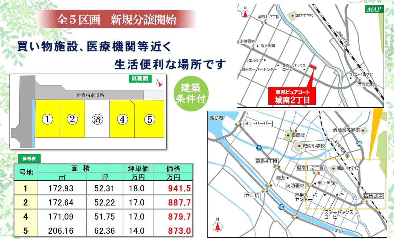 住宅用土地 長野県諏訪市城南2丁目2297-4 東邦ピュアコート城南2丁目 4号地