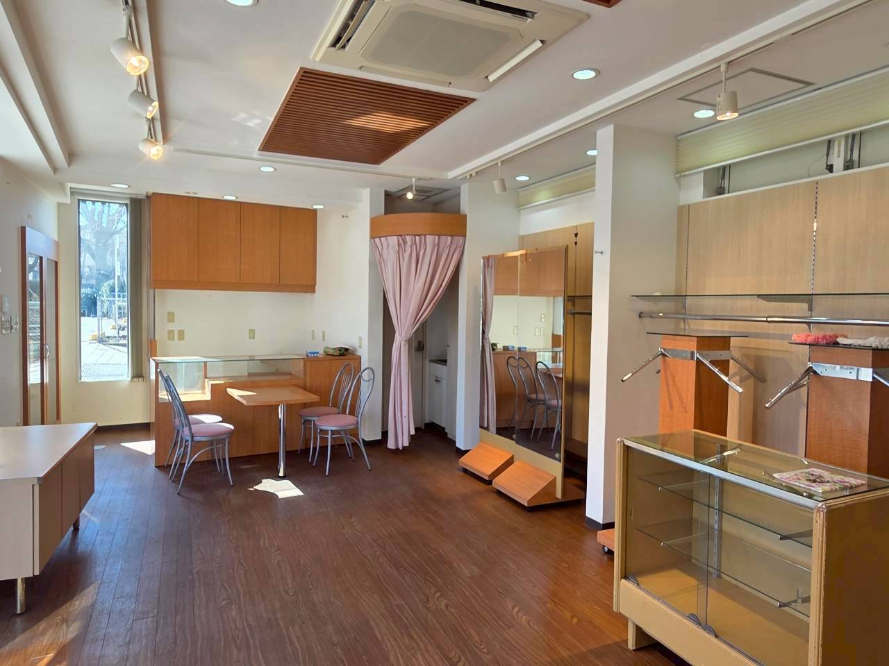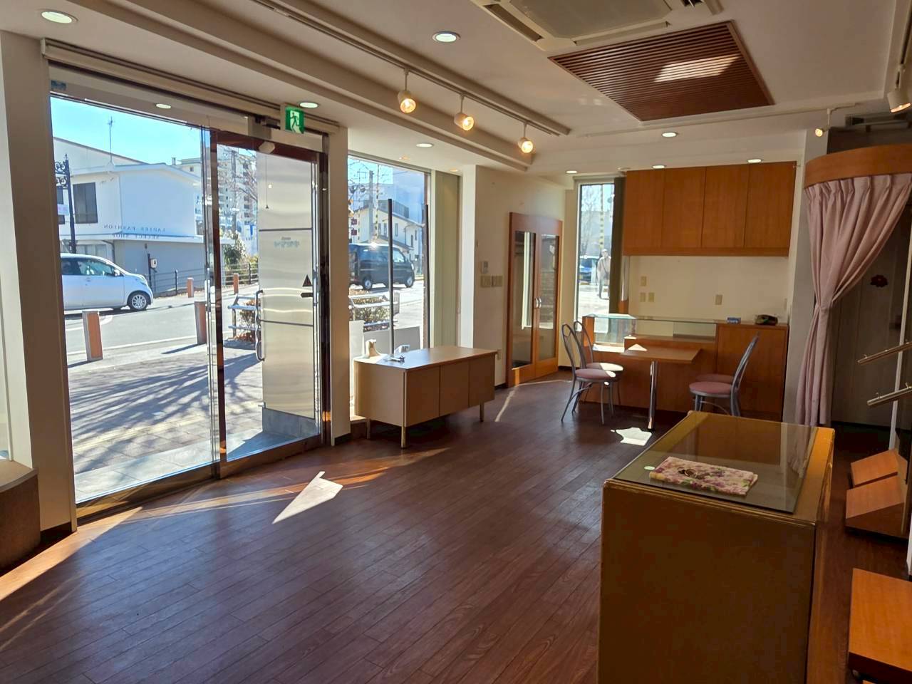 綺麗なテナント物件で、そのまま開業しやすい室内。周辺には物販店・飲食店が多く、人通り、観光客多数の商業エリア。