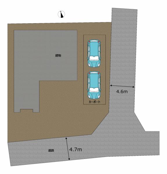 | 接道状況 | 方角:南 道路幅員:4.7m 公私区分:公道 方角:東 道路幅員:4.7m |