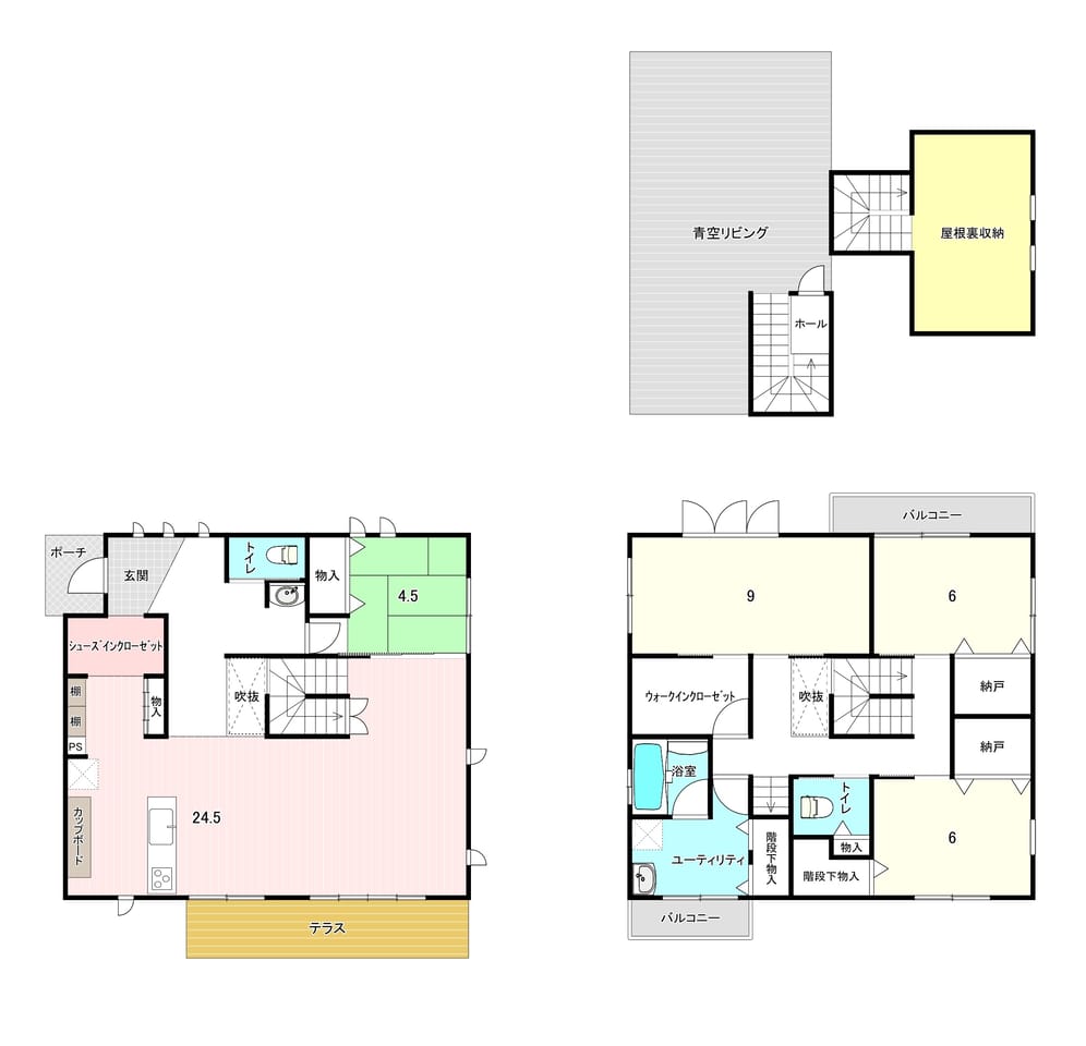 | 間取 | 4SLDK(LDK、洋室×3、和室×1、WIC、屋根裏収納) |