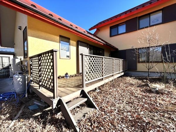 | 設備 | システムキッチン・TVモニタ付きインターホン・BT別室・暖房便座・温水洗浄便座・バス1坪以上・トイレ2箇所・庭・ウッドデッキ・エアコン・外物置・日当り良好・閑静住宅街・洗髪洗面化粧台・照明器具付き・プロパンガス・複層ガラス・上水道・下水道・電気・駐車場2台分 |