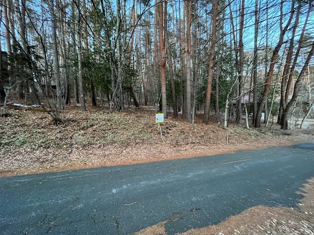 静寂な住宅地、前方は山林。北と南二面道路で南傾斜面地。二拠点居住。別荘にも適地。周囲は別荘混在。